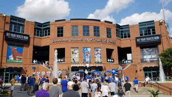 Durham Performing Arts Center (DPAC) is located in the American Tobacco Historic District next to the Durham Bulls Athletic Park.