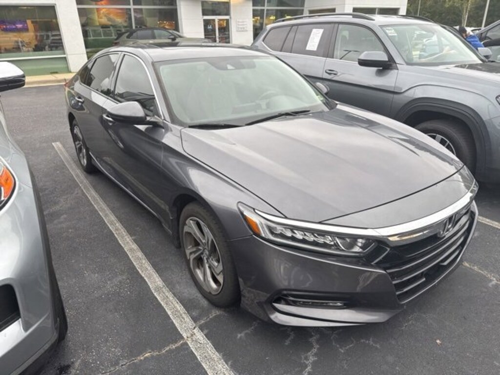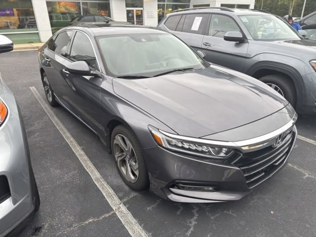 Gray 2018 Honda Accord EX-L w/Navigation FWD CVT 1.5T I4 DOHC 16V Turbocharged VTEC 17" Machine-Finished Alloy Wheels, Apple CarPlay/Android Auto, Auto High-beam Headlights, Exterior Parking Camera Rear, Fully automatic headlights, Garage door transmitter: HomeLink, Heated Front Bucket Seats, Memory seat, Navigation System, Power moonroof, Radio: 450-Watt AM/FM/HD Premium Audio System, Speed-Sensitive Wipers.